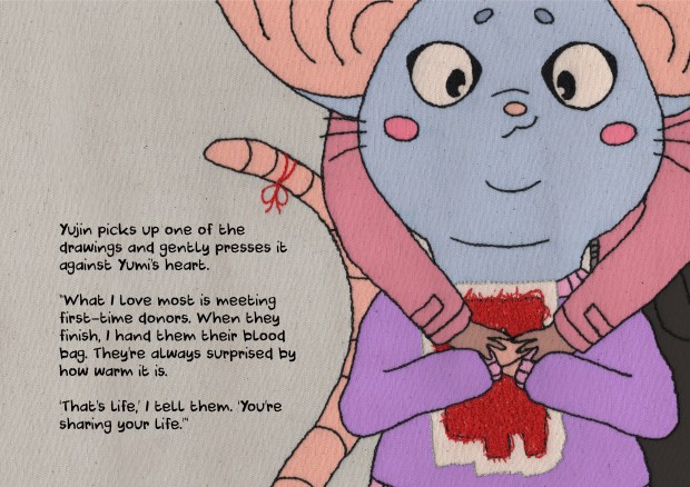 Working alongside University of Leeds researcher Dr Jieun Kim, we developed a children’s picture book about blood donation. Written by Jini based on her research, we worked together to develop character concepts, colour palettes and environments that would engage children in learning about what happens to blood when it is given and received (and everything in between).